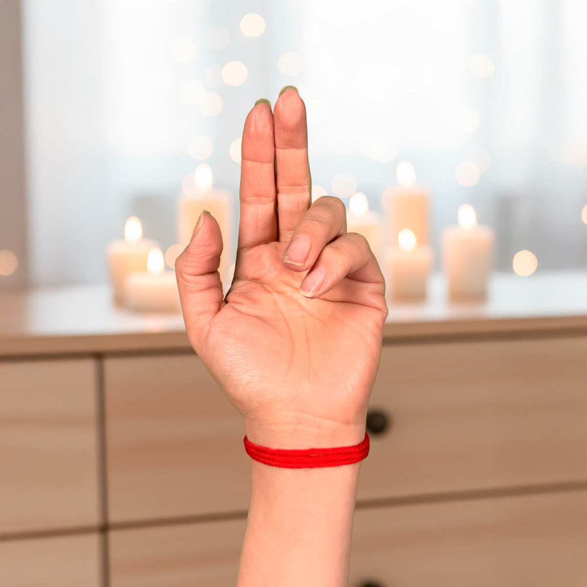 ◉ Paquete con 2 metros de hilo rojo 100% lana. Alcanza para colocar de 2 a 3 pulseras de manera correcta.