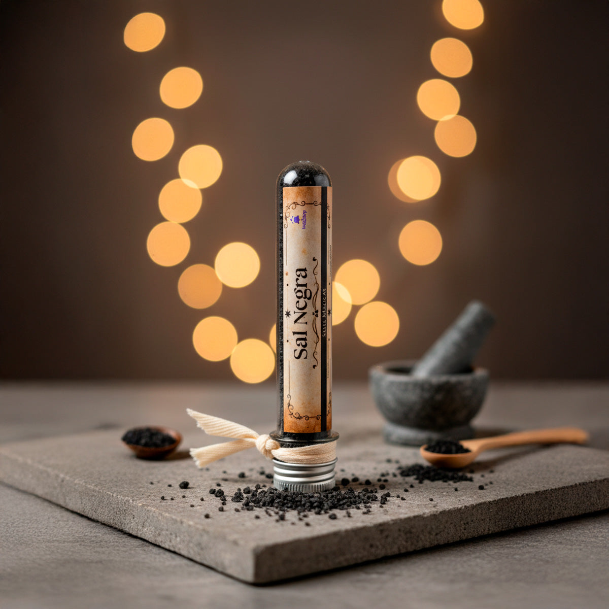 La Sal Mágica Negra es un poderoso protector espiritual que disuelve energías negativas y corta influencias dañinas.